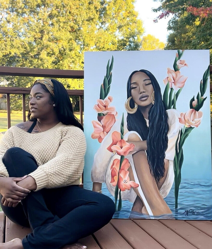 Mel Necole is a multidisciplinary artist based in Atlanta, GA. Her art explores the symbolic connections between humans and nature, blending contemporary, surrealistic, and fantasy elements to express emotion and experience. Through vivid symbolism and imaginative scenes, she invites viewers to reflect on the spiritual relationship between humanity and God’s creation.